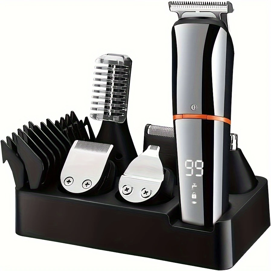GERTZY 6-in-1 Men’s Grooming Kit: Sleek Beard, Body & Nose Hair Trimmer with Precision Comb Attachments – USB Rechargeable, 600mAh Lithium Battery, Includes Charging Dock & Accessories, Nose Hair Trimming|Modern Grooming Tool|Metallic Finish, Beard Grooming Kit.